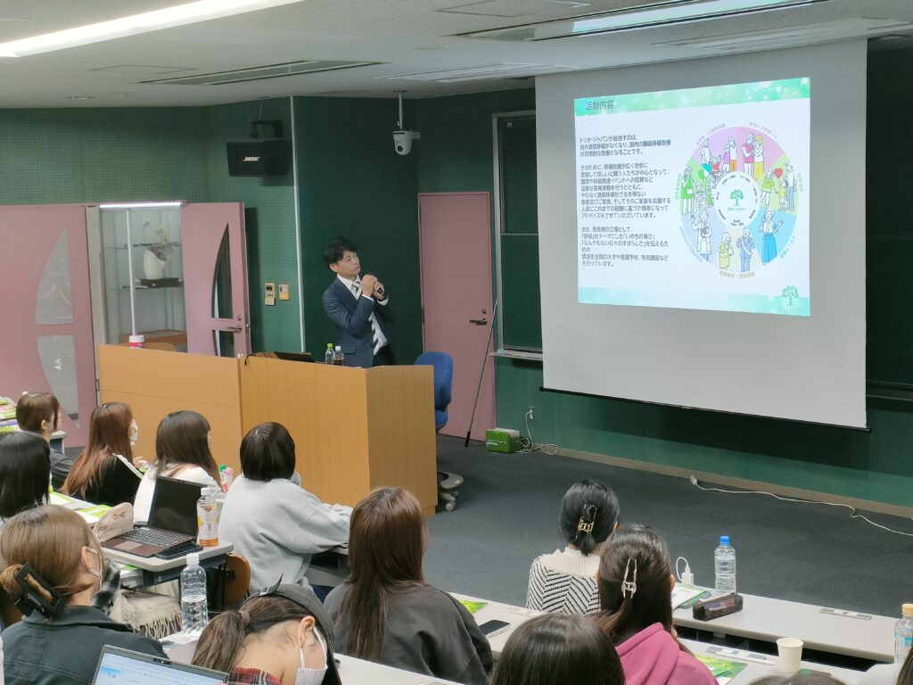 トリオ・ジャパンでは、移植医療がより身近な医療となることを願い、中学校・高校・大学で「命をつなぐ移植医療」に関する講話を行っています。